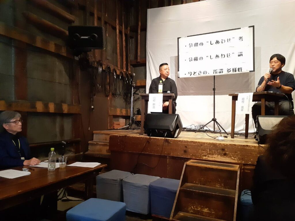 バックにテーマが3項目書いてある。(令和の“しあわせ”考、講、多様性)